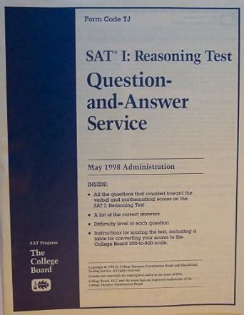 Read Online SAT I Reasoning Test Form Code TJ May 1998 Kindle Editon By Click Button. SAT I Reasoning Test Form Code TJ May 1998 it’s easy to recommend a new book category such as Novel, journal, comic, magazin, ect. You see it and you just know that the designer is also an author and understands the challenges involved with having a good book. You can easy klick for detailing book and you can read it online, even you can download it